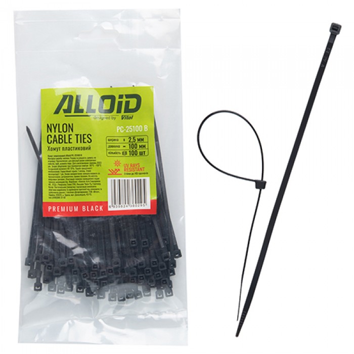 Хомут пластиковый Alloid 2.5 х 100 100шт/уп черный (PC-25100 B) и другие товары вы можете приобрести и заказать доставку по всей Украине в нашем интернет-магазине аксессуаров и инструмента gold-lights.com.