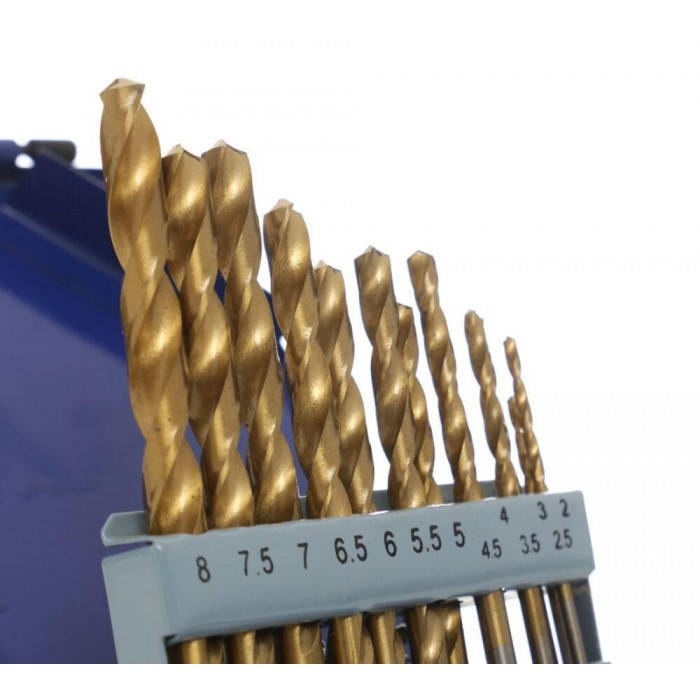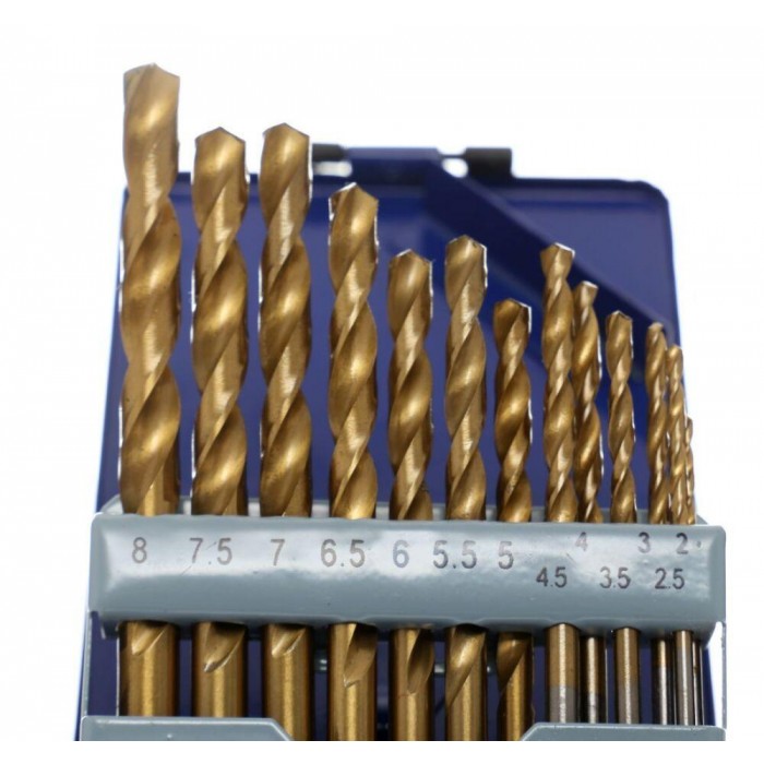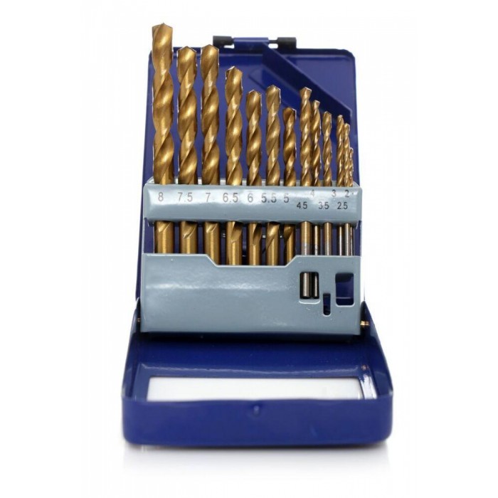 Набор сверл по металлу TAGRED TA1034, 13 шт - рекомендованные для использования в мастерских, для обработки легированных и углеродистых сталей повышенной жесткости, ковкого чугуна, железных агломератов, цветных металлов и затвердевших пластмасс. Сверла изготовлены из быстрорежущей стали с твердостью 62°HRc (+/-2°), углом обострения 118°, прямой заточкой без коррекции сдвига, пригодны для ручной заточки.