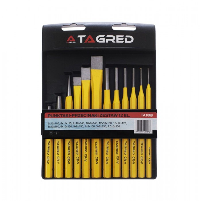 Набор зубил, кернеров и пробойников TAGRED TA1068 – изготовлен из высококачественных материалов, среди которых хромованадиевая сталь. Очень практичный и прочный, он будет использоваться в профессиональных и любительских мастерских.