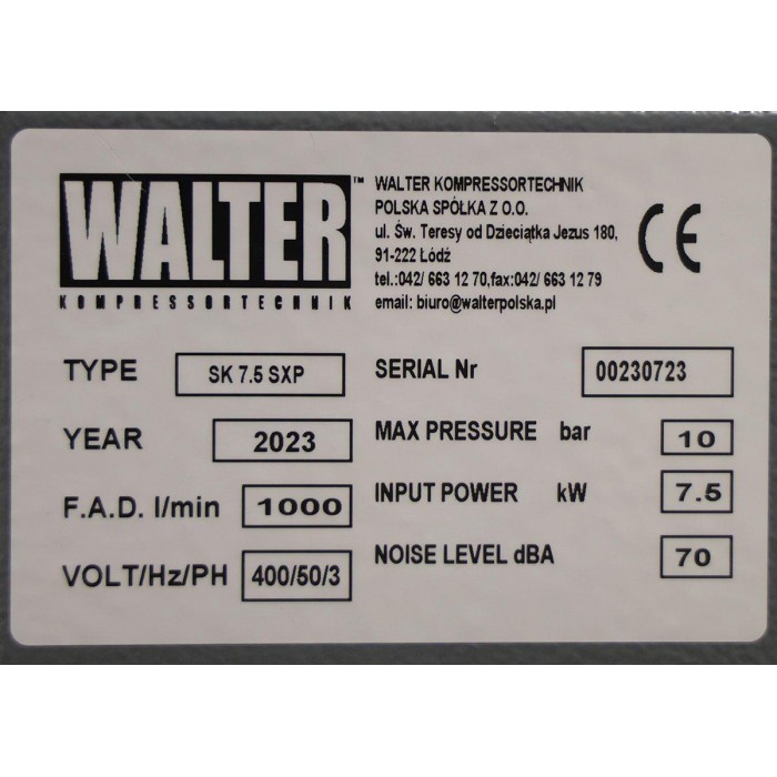 Оборудование WALTER производится из высококачественных европейских компонентов и отвечает мировым стандартам качества и безопасности. Производитель постоянно усовершенствует и модернизирует свою продукцию, предлагая своим клиентам еще больше надежности и эффективности. Заказать WALTER SK 7,5 SXP можно через онлайн магазин компрессоров Украина.
