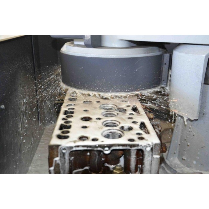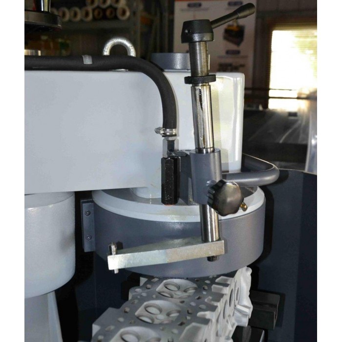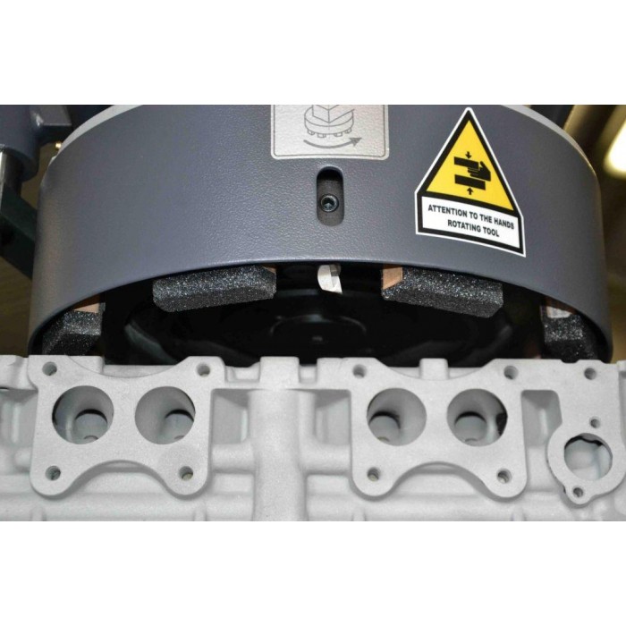 Станок оснащен электромотором, обеспечивающим два режима вращения шпинделя: 900 об/мин – для фрезерования ГБЦ из алюминия; 1400 об/мин – для шлифования деталей из чугуна, а также для обработки ГБЦ с фор камерами.