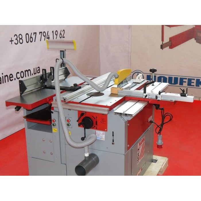 Большой рабочий стол из серого чугуна дополнен угловым упором (до +/- 45°) в Т-образном пазу. Фуговальный и рейсмусовый агрегаты оборудованы 3-ножевым строгальным валом со скоростью вращения 4500 об/мин. Пильный узел регулируется по углу наклона до 45° с помощью маховика, а механизм торцовочной пилы позволяет точно выполнять поперечные и угловые резы. Компактный и чрезвычайно функциональный, этот универсальный станок по дереву отлично подойдет для самостоятельных мастеров и небольших мастерских, которые ценят практичность оборудования и качество работы.